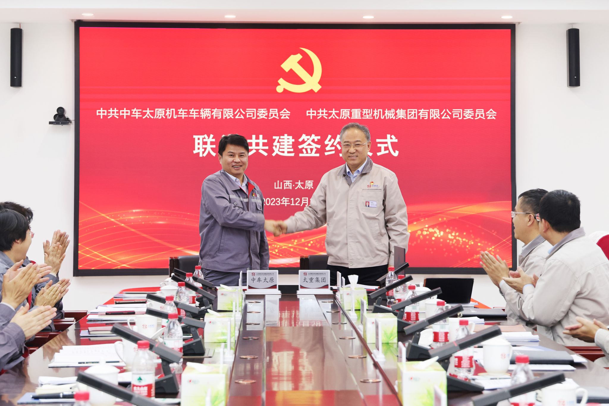 段云龙在研讨交流中指出,在党的二十大报告中,习近平总书记两次提到“要着力提升产业链供应链韧性和安全水平”。每次回顾学习总书记的系列讲话,都有一种“常学常新”“常思常新”的感觉。中车太原公司与太重集团作为山西省首批重点产业链“链主企业”,发展壮大实体经济、推进新型工业化、维护产业链韧性及安全水平,我们都责任重大。中车太原公司持续深入贯彻落实习近平总书记考察调研山西重要讲话重要指示精神,聚焦主责主业,加快全产业链布局。公司在产品研发、市场开拓、产品采购等方面与省内“链上”企业深度合作,提高关键重要部件省内配套占比,实现强链补链延链。希望双方可以针对性联合开展党的创新理论学习研讨,为全力推动山西重点产业链高质量发展奠定思想基础,促进双方各系统人员业务能力、攻关能力、创新能力有效提升,共同在强链、补链、延链上发挥优势、挖掘潜能、形成合力,全方位推进我省工业经济转型和产业链高质量发展。双方签订了《联学共建协议书》,并表示,将以此次联学共建主题活动为契机,围绕“抓党建促产业链协同发展、促山西经济转型升级”主线, 有组织、有重点地开展联学共建相关活动, 通过互学互融、共建联建,实现资源共享、优势互补,携手为山西重点产业链提质换挡再升级贡献智慧和力量。双方还进行了现场研学。在公司领导陶家晋、张新伟的陪同下,中车太原公司一行11人重走习近平总书记考察调研太重之路,现场调研参观了太重轨道公司车轮厂二线全部工艺环节,见证了“不到一分钟生产一片车轮”的智造实力。举行重温入党誓词活动,再一次接受党性洗礼,坚定理想信念。参观了太重集团展览中心,详细了解公司生产经营、产业布局、科技创新、项目建设等情况,直观感受了公司在推动装备制造转型升级发展过程中的创新举措和取得的成效。太重集团与中车太原公司是数十载的重要战略合作伙伴,双方在共同培育、推动山西省轨道交通产业链发展上始终坚持“协同创新、互促共融”的良好态势,通力合作推动山西轨道交通装备和整体产业链提质换挡,并推动“山西制造”走出国门,让“山西品牌”在海外受到广泛关注和赞许。下一步,双方将“共学理论、同掌思想之舵,共研技术、同聚攻关之力,共谋发展、同铸先锋之志”,结成牢不可破的事业共同体,加强产业链协同创新、协同营销和协同竞争,在践行领袖嘱托上展现新作为,在推动高端装备制造业链式集群发展上体现新担当,携手开创我省高端装备制造的新辉煌!