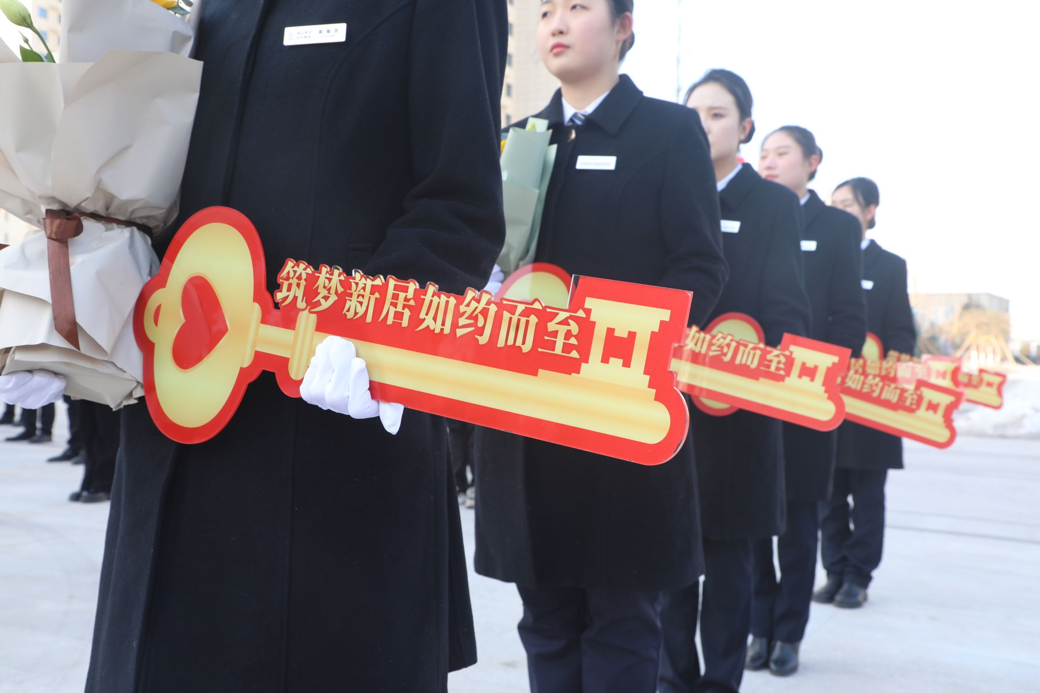 活动现场空飘高悬、拱门挺立,“同心同德共享美好家园 再接再厉共建一流太重”的红色横幅标语醒目又暖心,道路旁的美陈装饰、错落有致的绿植,园区内的一砖一瓦、一景一筑、一木一石,每一处都在以最美的姿态欢迎职工回家。在百名职工的见证下,十二枚礼炮热烈鸣响,公司领导将金灿灿的新房钥匙交付到6位职工代表手中。大家倍感欣喜、热情满怀。沉甸甸的钥匙,即将开启通往幸福的大门。此时此刻,所有心心念念的等待都已如愿,职工们拥有了自己的温馨家园。