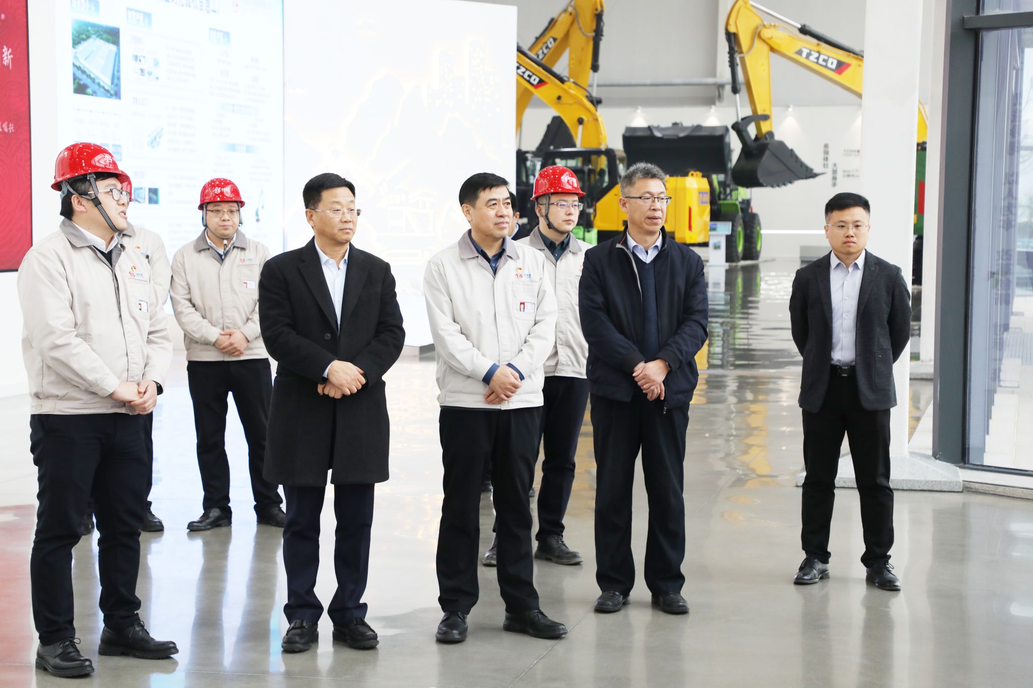 在集团公司副总经理姚国平的陪同下,客人一行参观了太重集团展览中心和智能高端液压挖掘机产业园区。