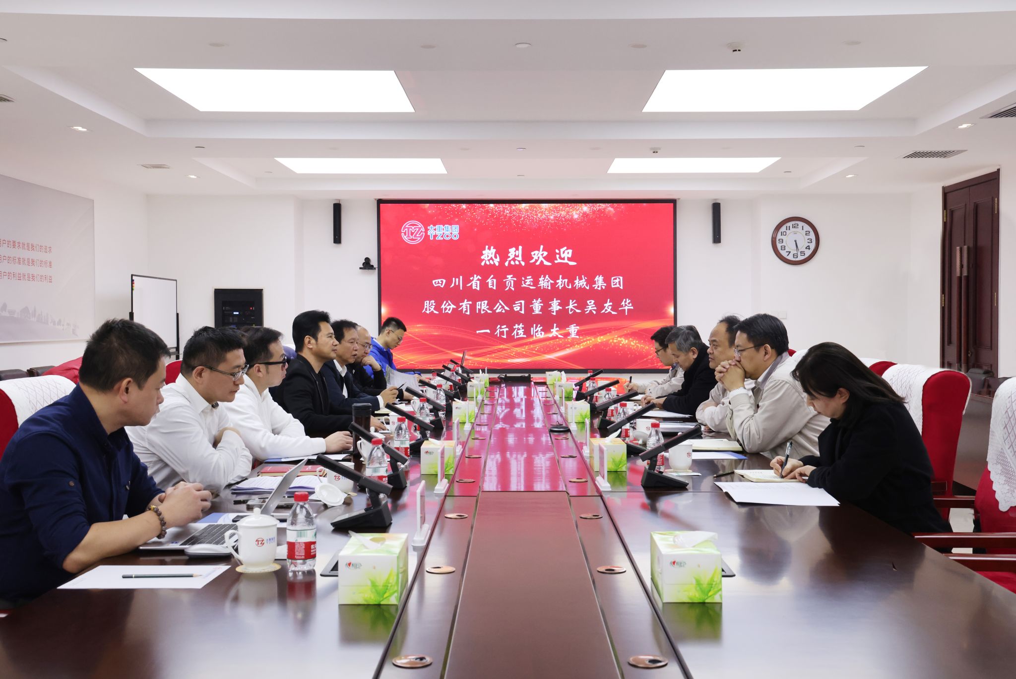 3月5日,四川省自贡运输机械集团股份有限公司董事长吴友华一行来集团公司友好访问,集团公司党委副书记、副董事长、总经理陶家晋热情接待了客人一行,双方围绕进一步深化合作进行了充分交流。