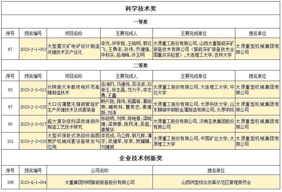 近日,山西省人民政府印发《关于2023年度山西省科学技术奖励的决定》,对促进山西省科学技术进步和经济社会发展作出突出贡献的科学技术人员和组织给予奖励。太重集团5项成果喜获山西省科学技术奖。太重向明荣获企业技术创新奖。