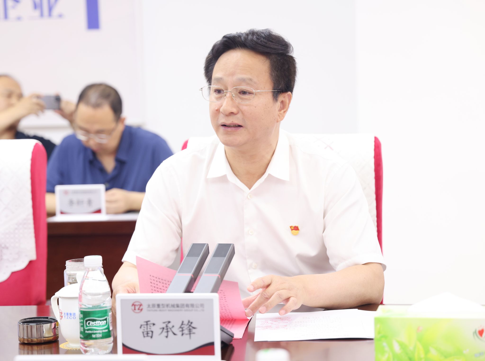 雷承锋对太重改革的成绩表示赞叹,认为此次合作是一场携手共赢的双向奔赴,能与“国之长子”签约合作非常荣幸。他简要介绍了山西职业技术学院的发展历程以及总体建设情况,他说,长期以来,山西职业技术学院与太重保持着密切合作,并成立数智制造产业学院,切实做到了“学科跟着产业走、专业围着需求转”,合作成果初显。希望以此次合作为新起点,双方进一步发挥各自优势,通过技术研发与人才培养的交融贯通,在增强创新能力、优化产业体系、完善人才培养等方面形成强大合力,为太重的转型发展提供人才支撑,为全方位推动我省高质量转型作出更大贡献。签约仪式前,客人一行还参观了集团公司展览中心。集团公司党委专职副书记、副董事长张新伟,集团公司董事、太原重工总经理王省林及相关单位负责人参加座谈。