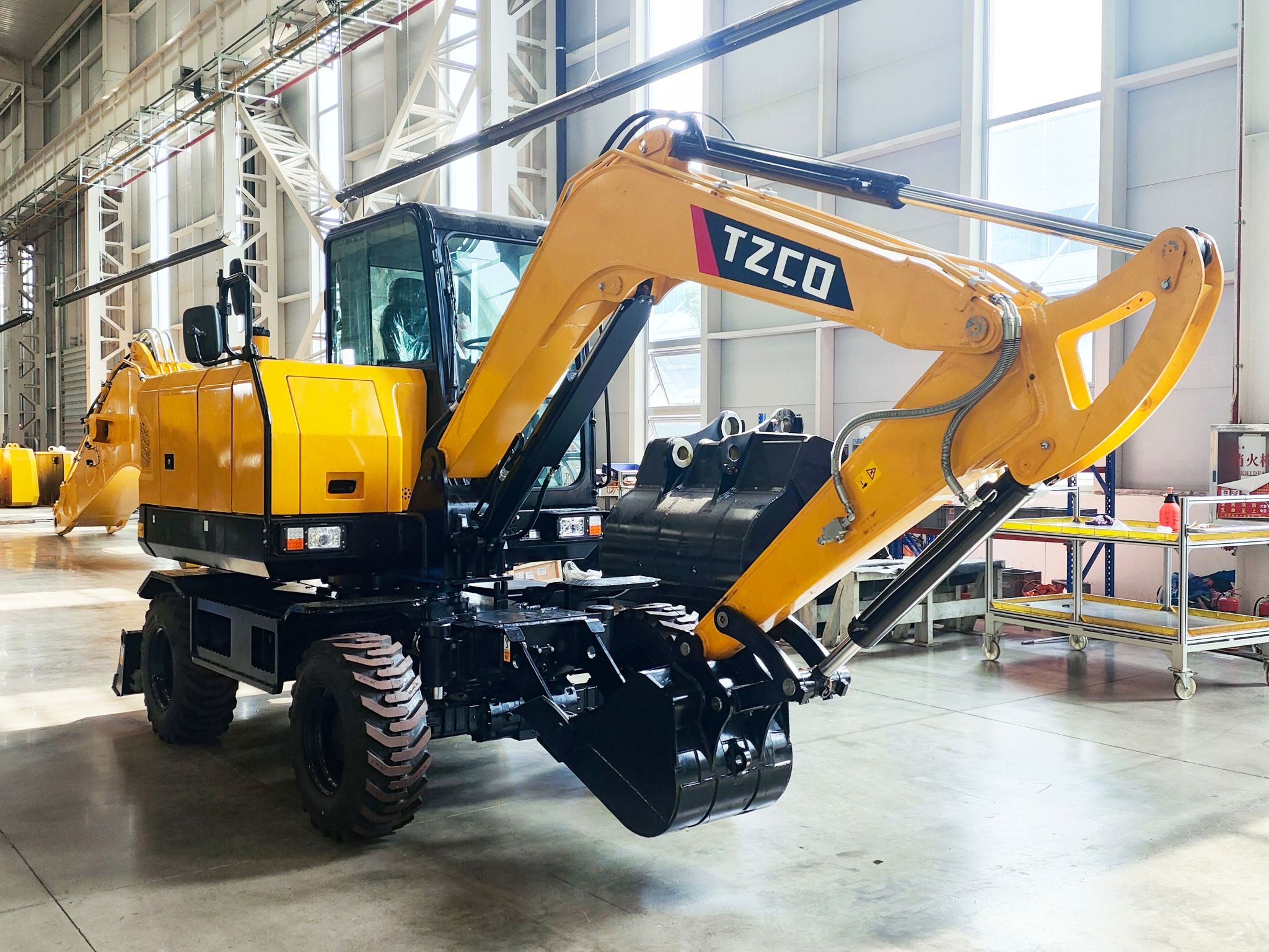 TZ60W具有机动灵活、转场便利、行走速度快、对地表损害小等得天独厚的优势,在市政工程、水利建设、交通建设等领域有着广阔的运用空间。这一新品的试制成功,填补了公司在轮式挖掘机领域的空白。