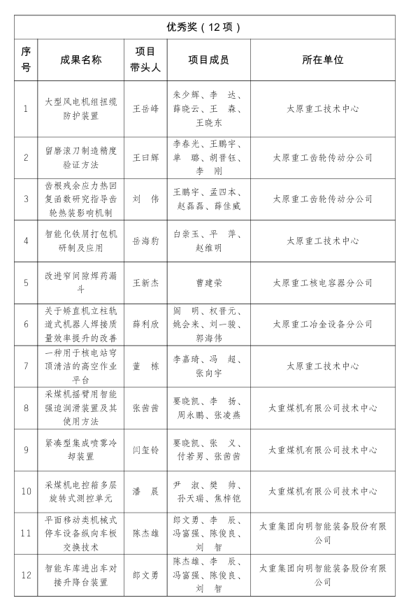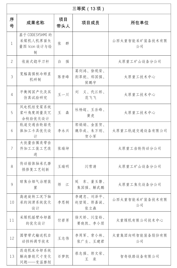 近日,2025年全省“五小”创新大赛及2025年全市“五小”创新大赛获奖名单相继揭晓,集团公司申报的优秀成果取得了可喜成绩。其中,荣获山西省二等奖8项、三等奖12项;荣获太原市一等奖4项、二等奖8项、三等奖13项、优秀奖12项。华体会平台获2025年全省“五小”创新大赛优胜单位。华体会平台工会、太重煤机有限公司工会获2025年全市“五小”创新大赛优秀组织单位,太原重工起重机分公司、太原重工技术中心获2025年全市“五小”创新大赛优胜单位。